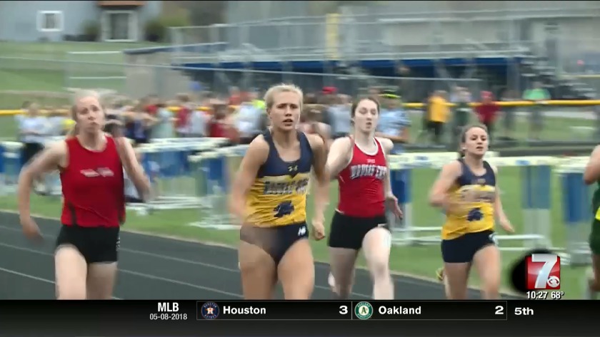 Brooke Jaworski sets the fastest time in state history in the 300 meter hurdles at the Wausau City Meet.